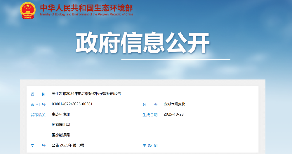生態環境部 關于發布2024年電力碳足跡因子數據的公告